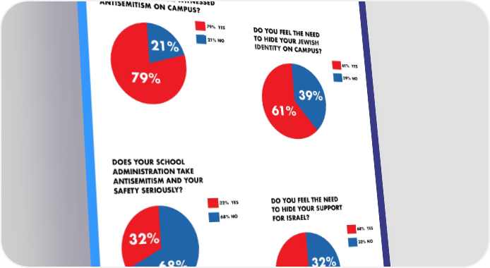 STUDENT RESPONSES TO SURVEY | SUMMARY *SURVEY WAS TAKEN PRIOR TO OCTOBER 7 MASSACRE HAVE YOU BEEN A VICTIM OF ANTISEMITISM OR WITNESSED ANTISEMITISM ON CAMPUS? 79% YES DO YOU FEEL THE NEED 21% NO TO HIDE YOUR JEWISH 21% IDENTITY ON CAMPUS? 61% YES 79% 39% NO 39% 61% DOES YOUR SCHOOL ADMINISTRATION TAKE ANTISEMITISM AND YOUR SAFETY SERIOUSLY? 32% YES DO YOU FEEL THE NEED 68% NO TO HIDE YOUR SUPPORT FOR ISRAEL? 32% 68% YES 32% NO 68% 32% 68% 16